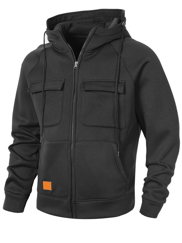 Men's Casual Solid Color Multi-pocket Hooded Cardigan Zipper Jacket