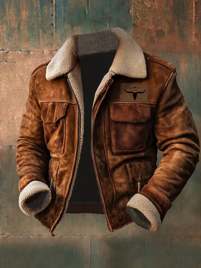 Giacca invernale in pile retrò western da uomo