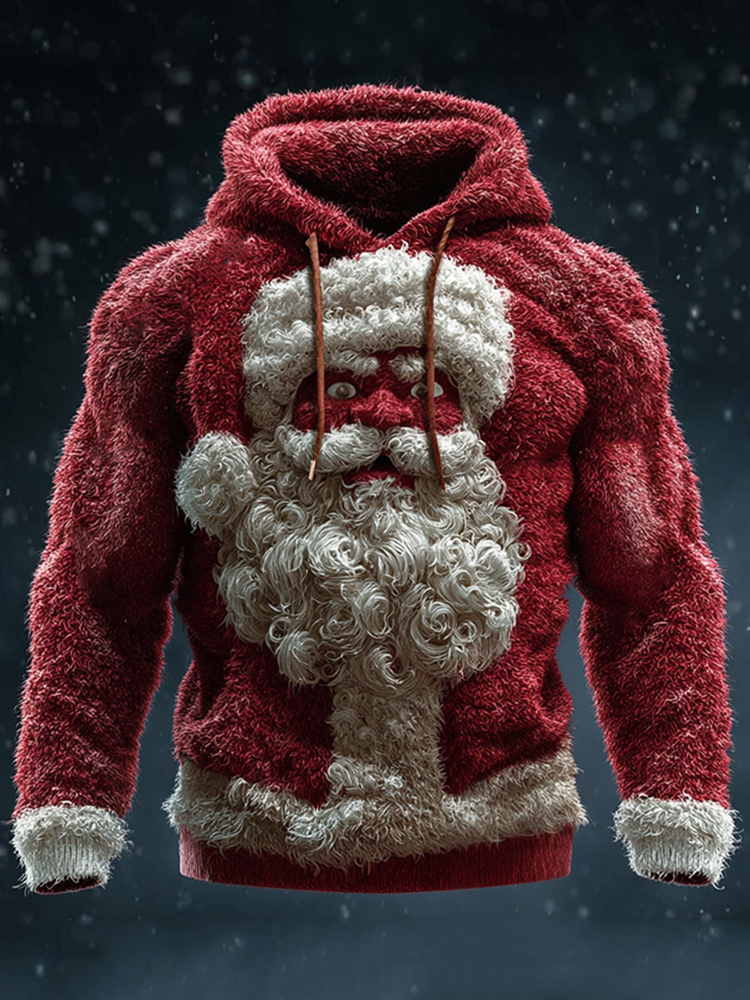 Men's Christmas Angry Santa Claus Cozy Plush Hoodie