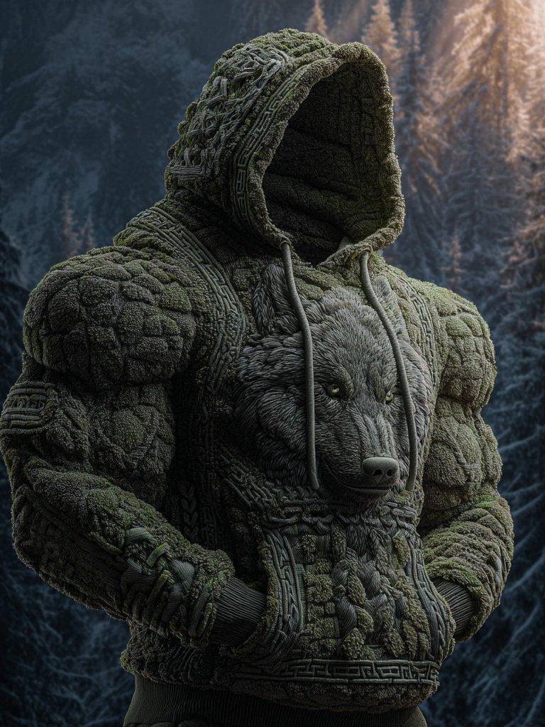 Viking Jungle King Wolf Celtic Art Warm Men's Flannel Hoodie