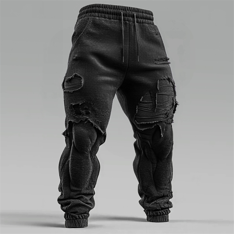 Men's Christmas Season Muscle Line Contrast Distressed Sweatpants