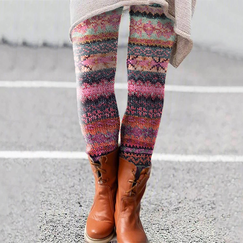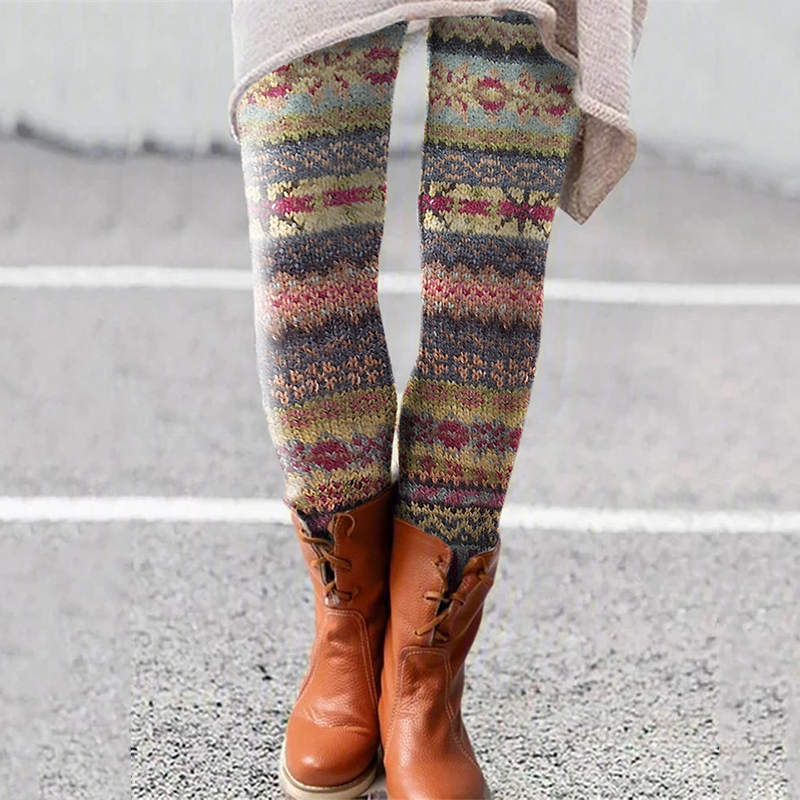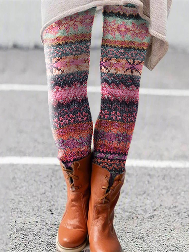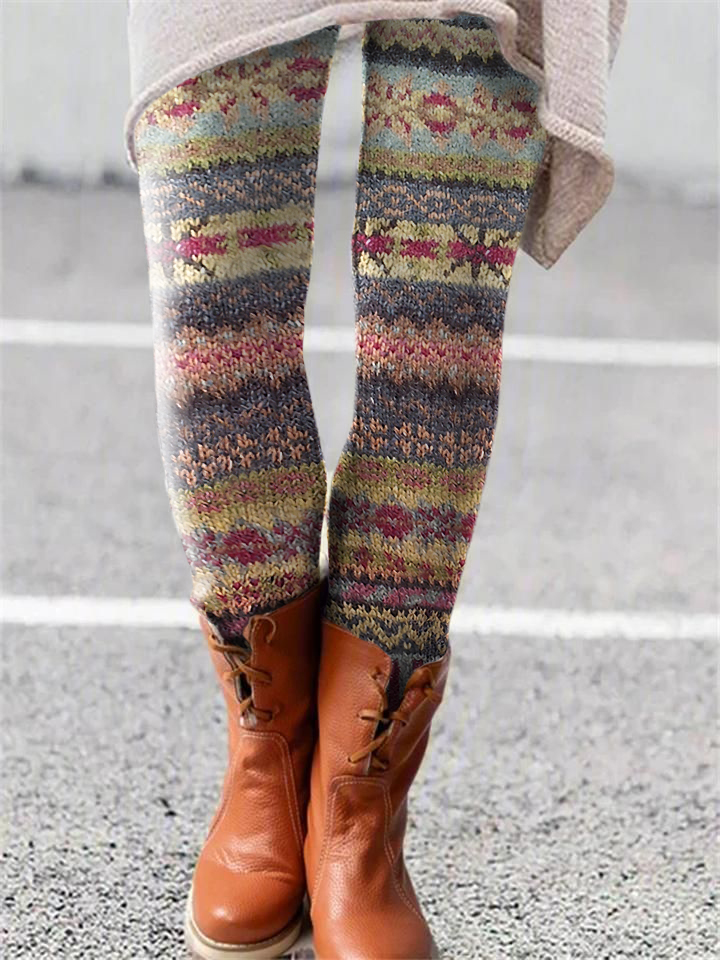 Retro Christmas Pattern Knitted Print Leggings