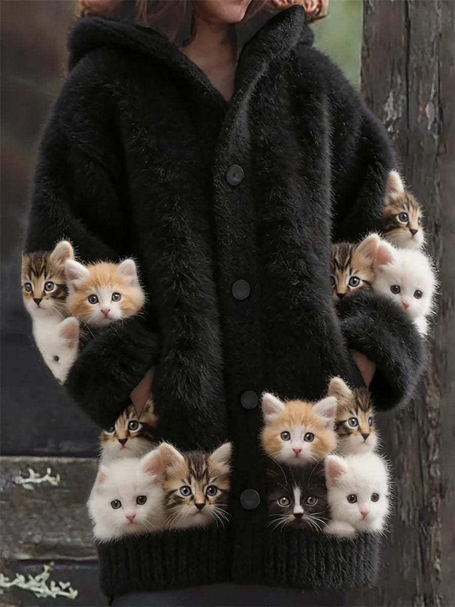 Women's Flannel Cute Cats Print Coats