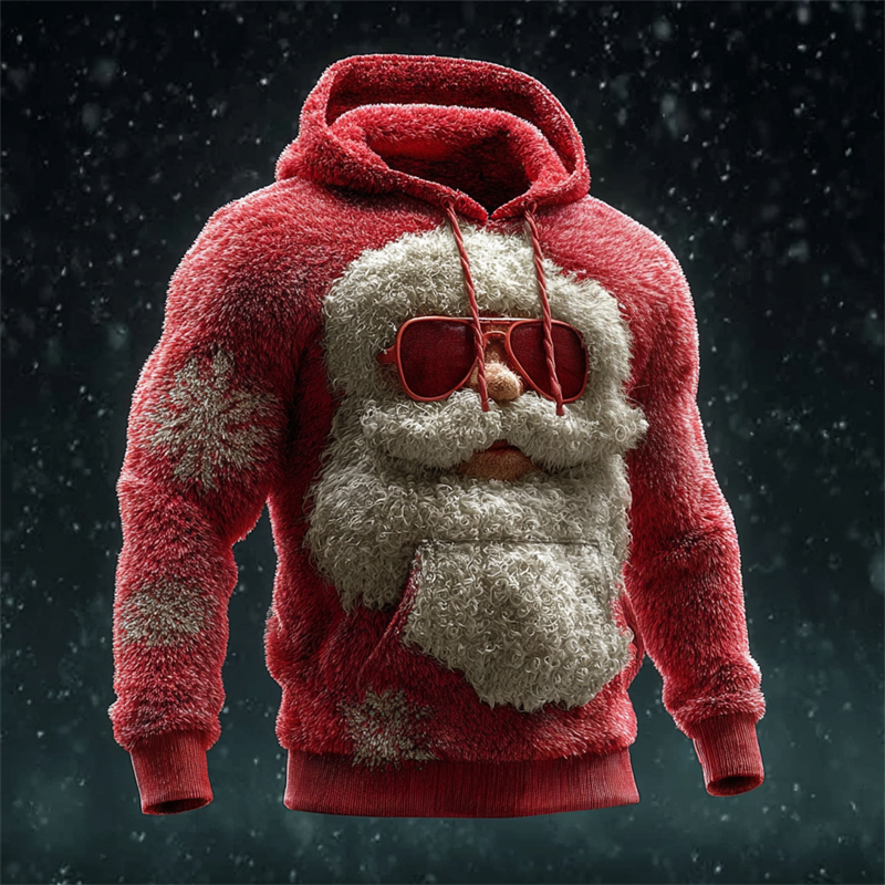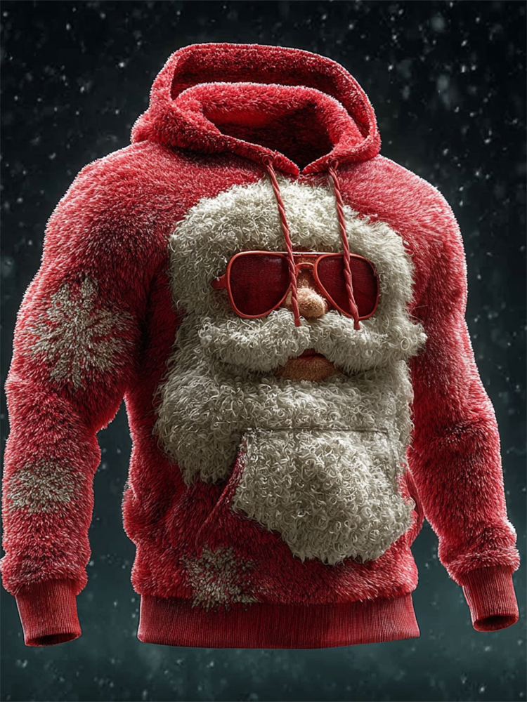 Men's Funny Santa Claus Snowflakes Cozy Plushhoodie