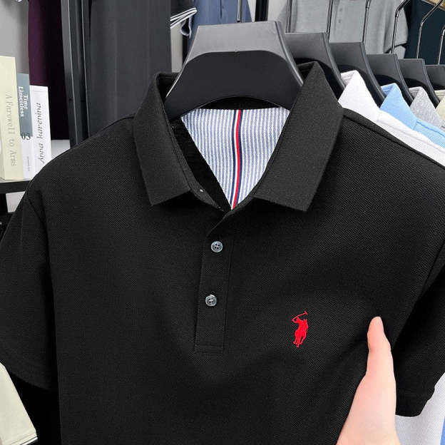 Men's cotton embroidered short-sleeved polo shirt