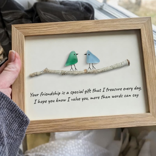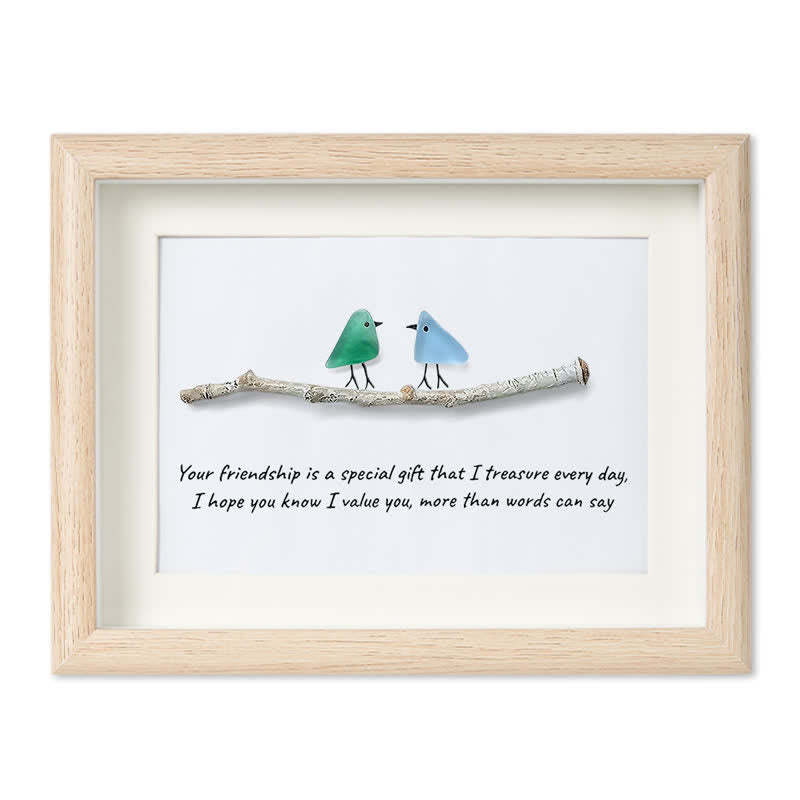 Handmade Friendship Quote With Birds Sea Glass Framed Art