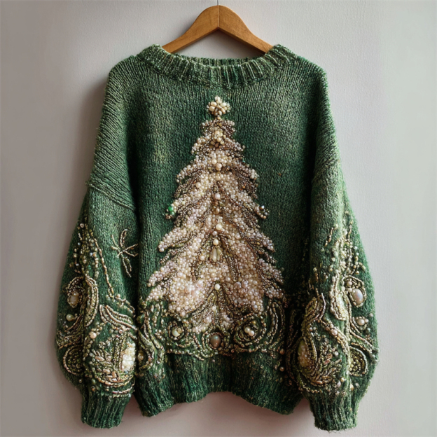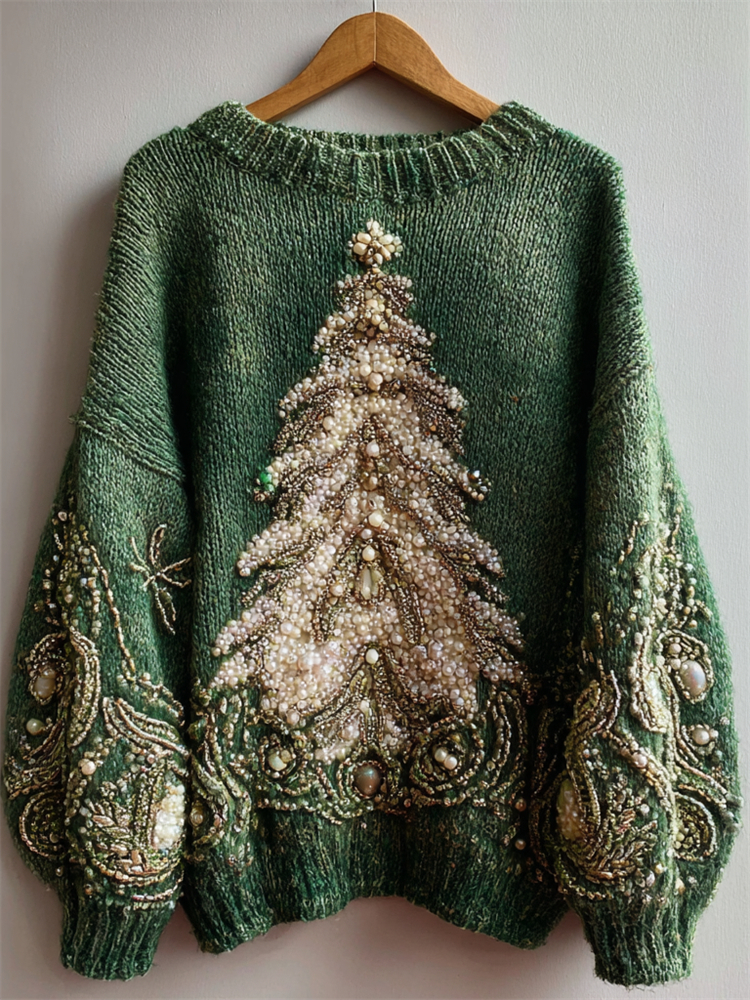 Elegant Christmas Tree Beaded Cozy Knit Sweater