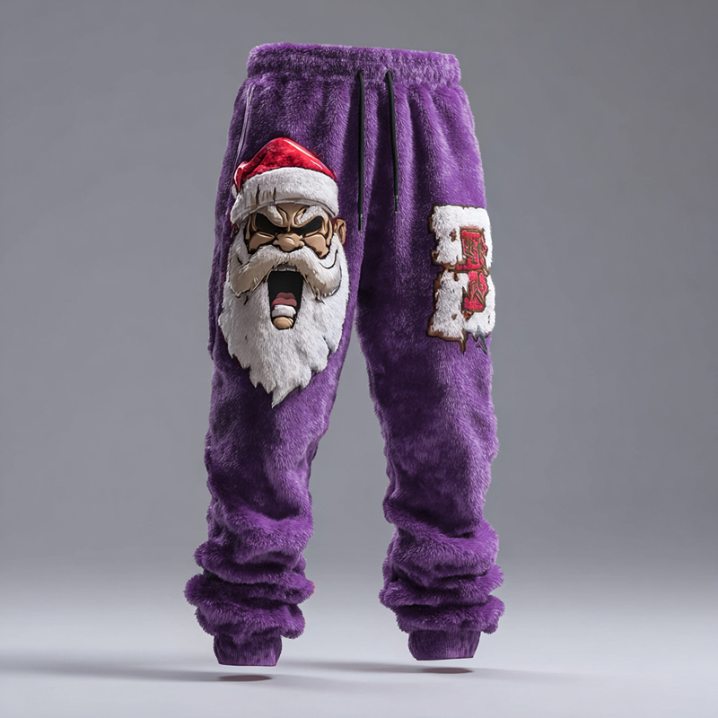 Men's Quirky Angry Santa Claus Flannel Sweatpants