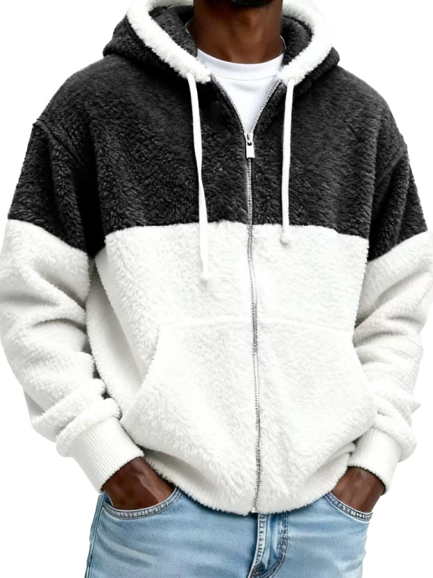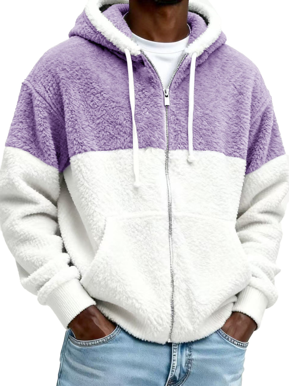 Giacca a maniche lunghe con cappuccio in pile caldo e patchwork casual elegante da uomo