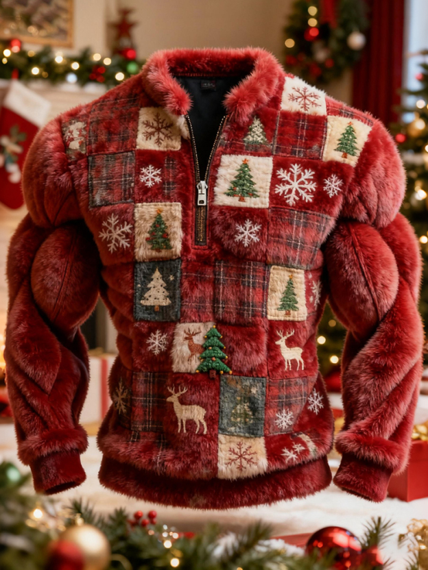 Men's Patchwork Geometric Christmas Color-blocked Print Sweatshirt