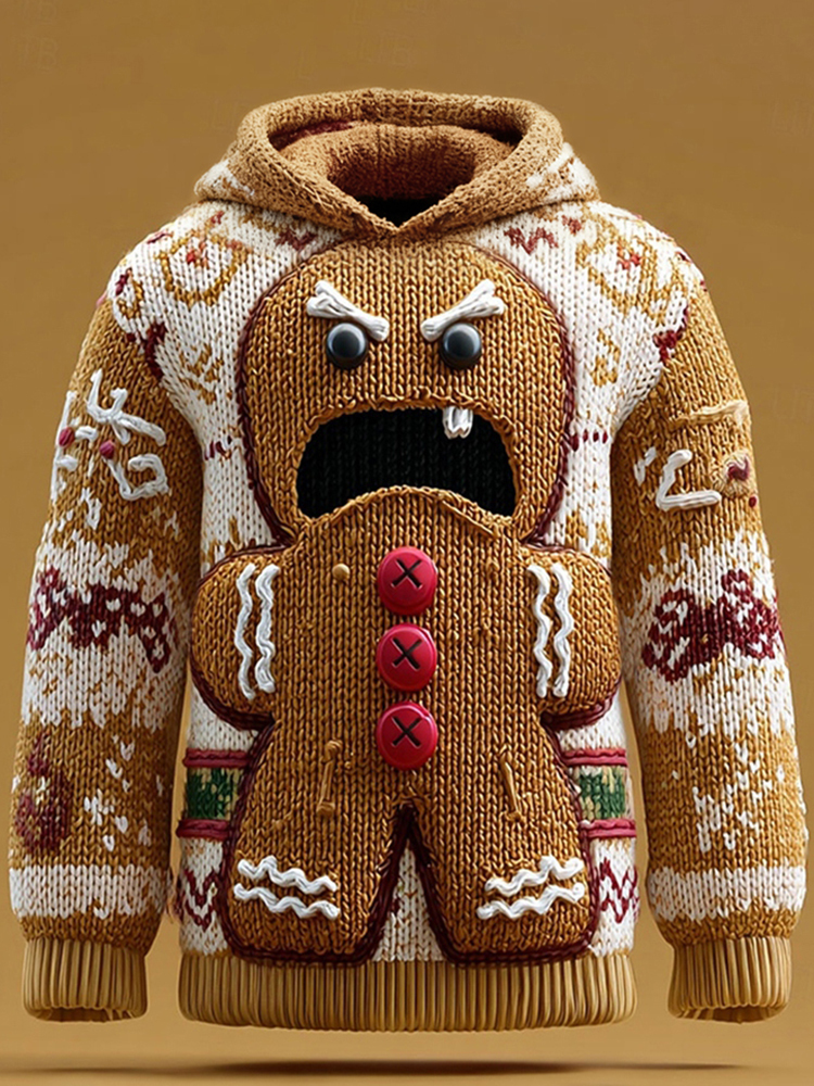 Men's Angry Gingerbread Man Hooded Ugly Sweater
