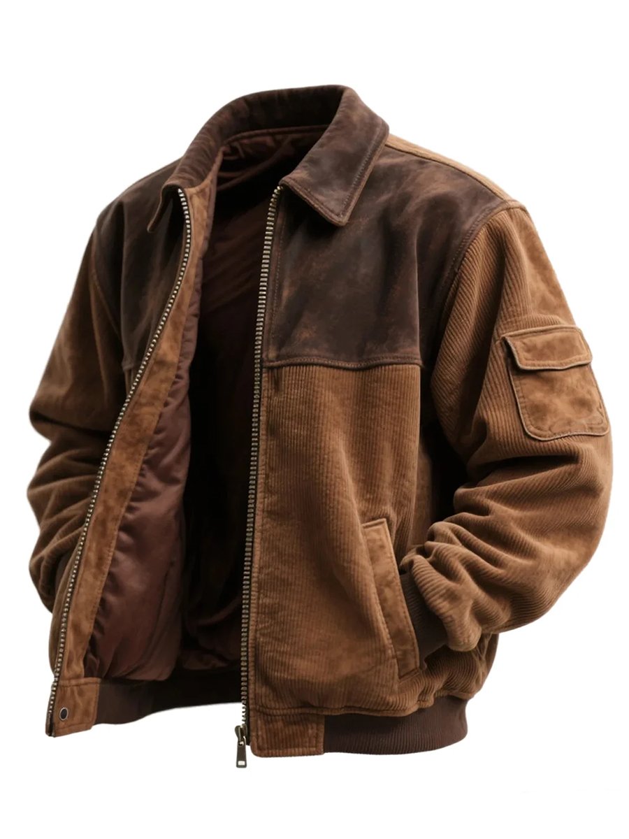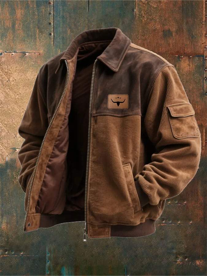 Vintage Corduroy and Suede Contrast Lapel Jacket