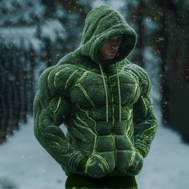 Christmas Muscle Line Art Flannel Vintage Hooded Sweatshirt