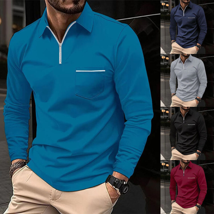 Polo Shirt - Long Sleeves - Chest Pocket - Semi-closed Shirt - Men's Shirt