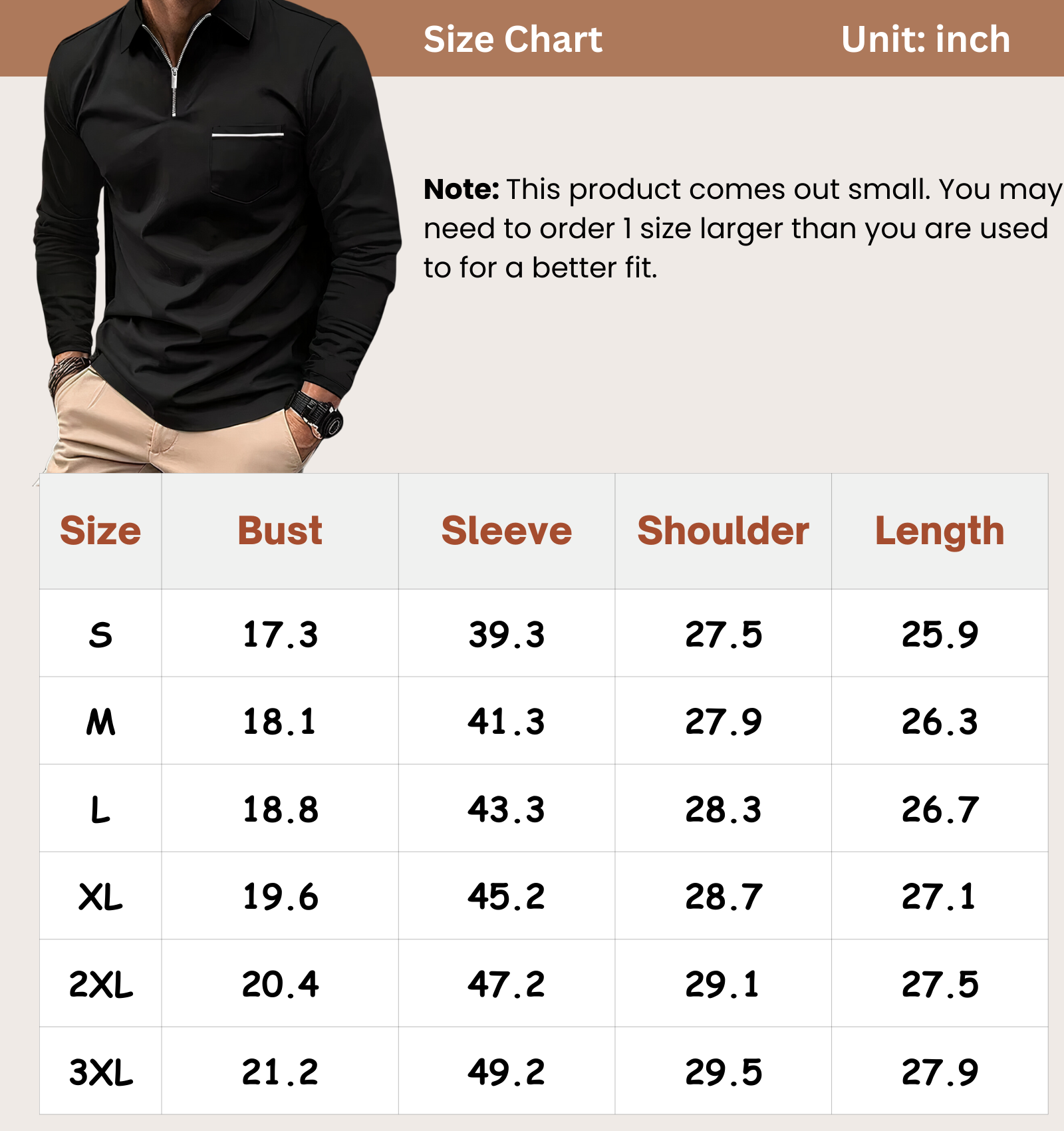Size Chart (inch):