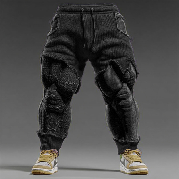Men's Christmas Muscle Line Art Ripped Sports Pants