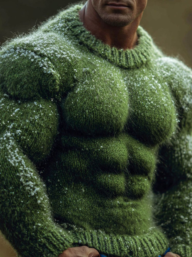 Men's Christmas Season Green Muscle Art Cozy Knit Sweater