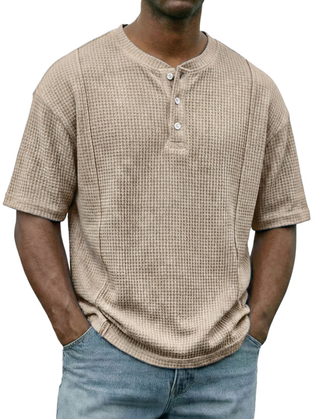 Chemise Henley décontractée à manches courtes en tricot gaufré pour hommes