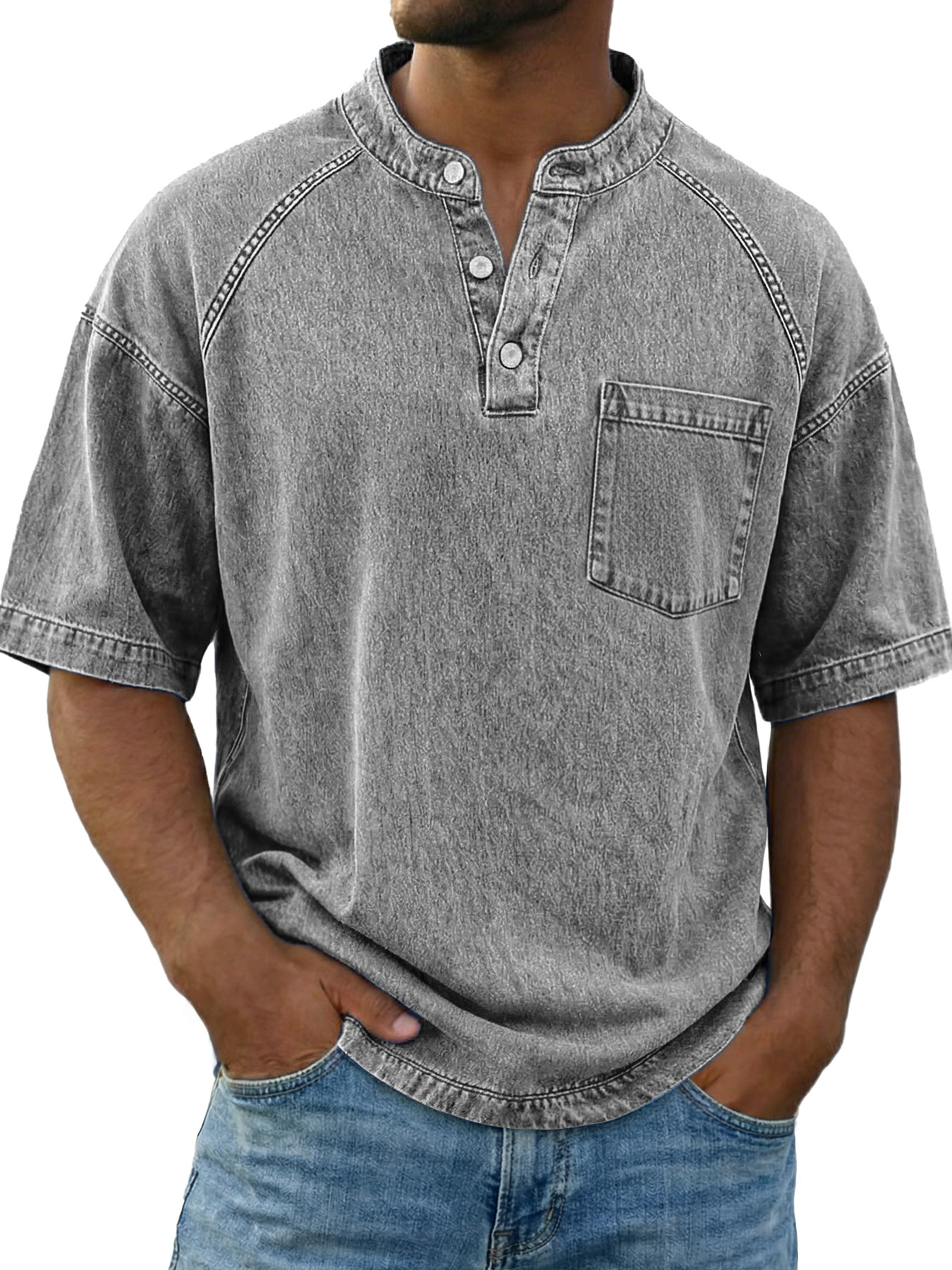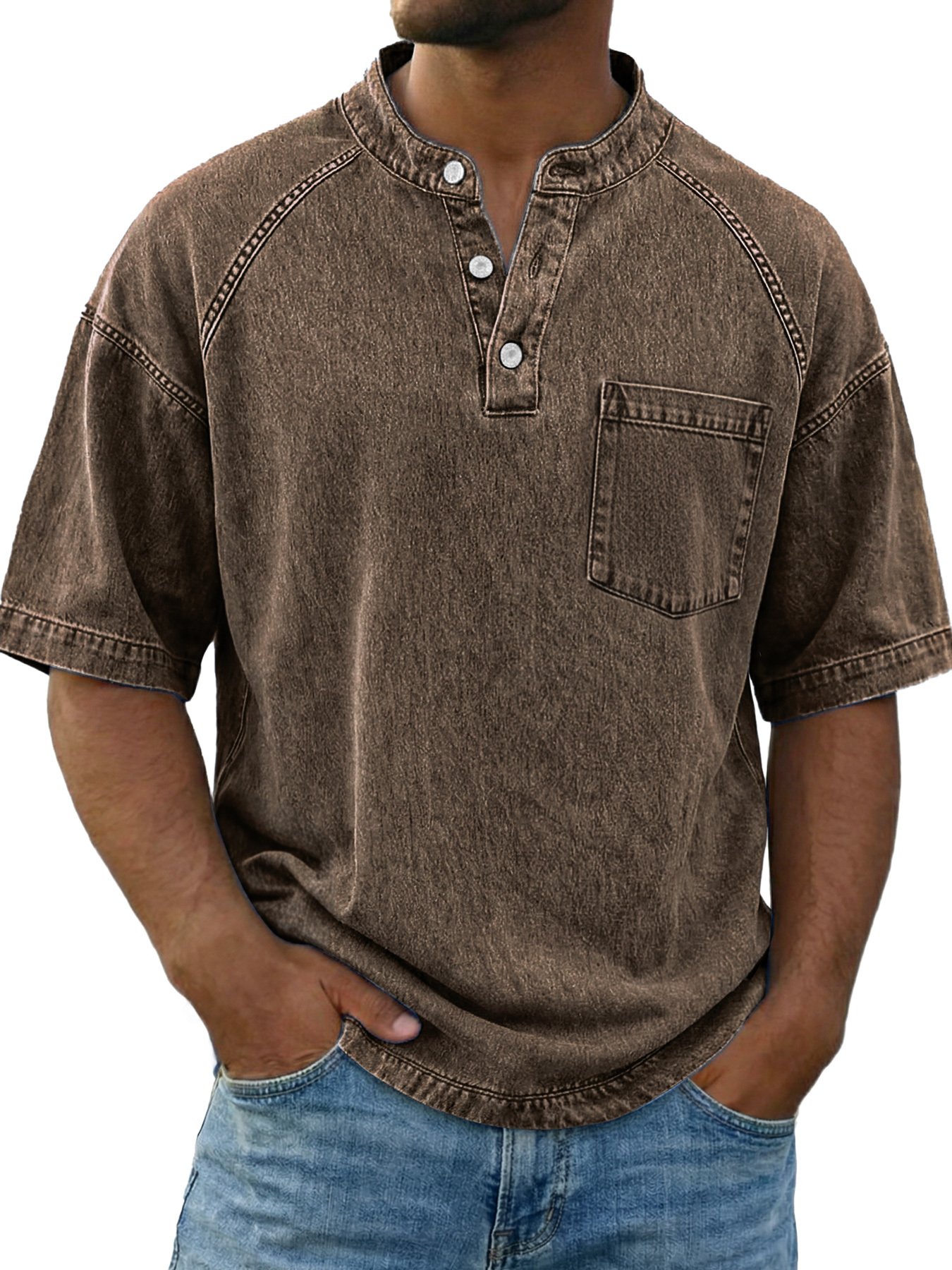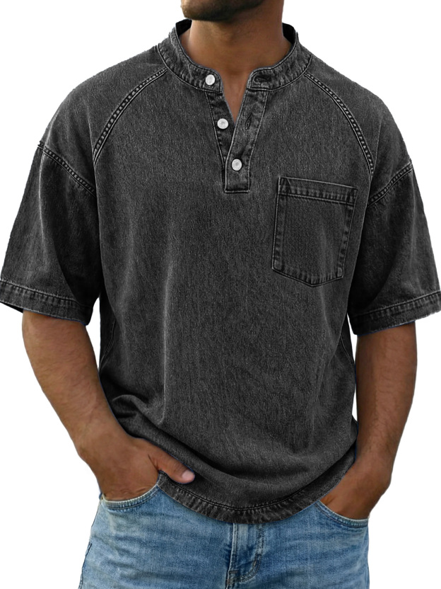 Chemise Henley décontractée à manches raglan vintage pour homme avec poche