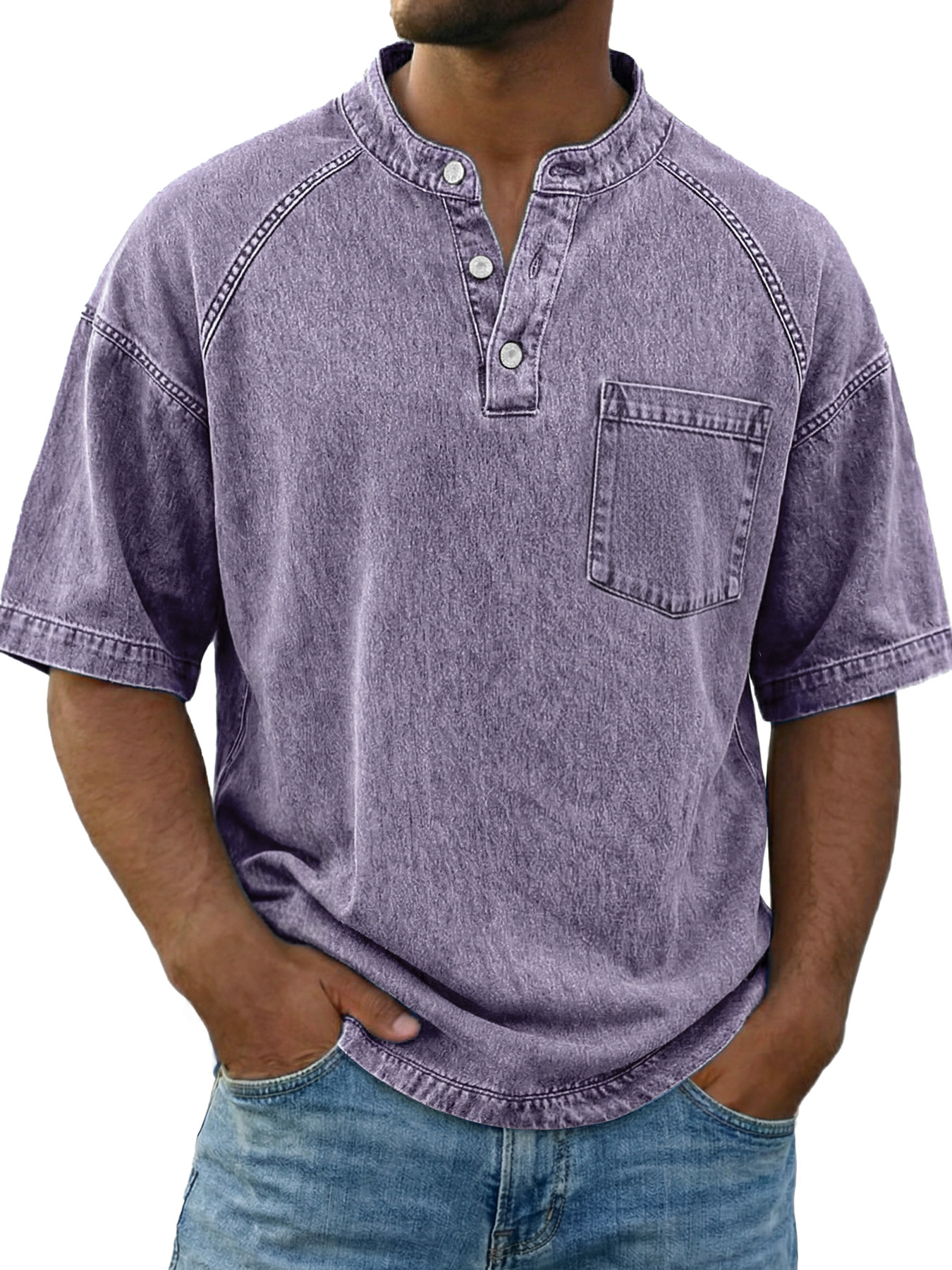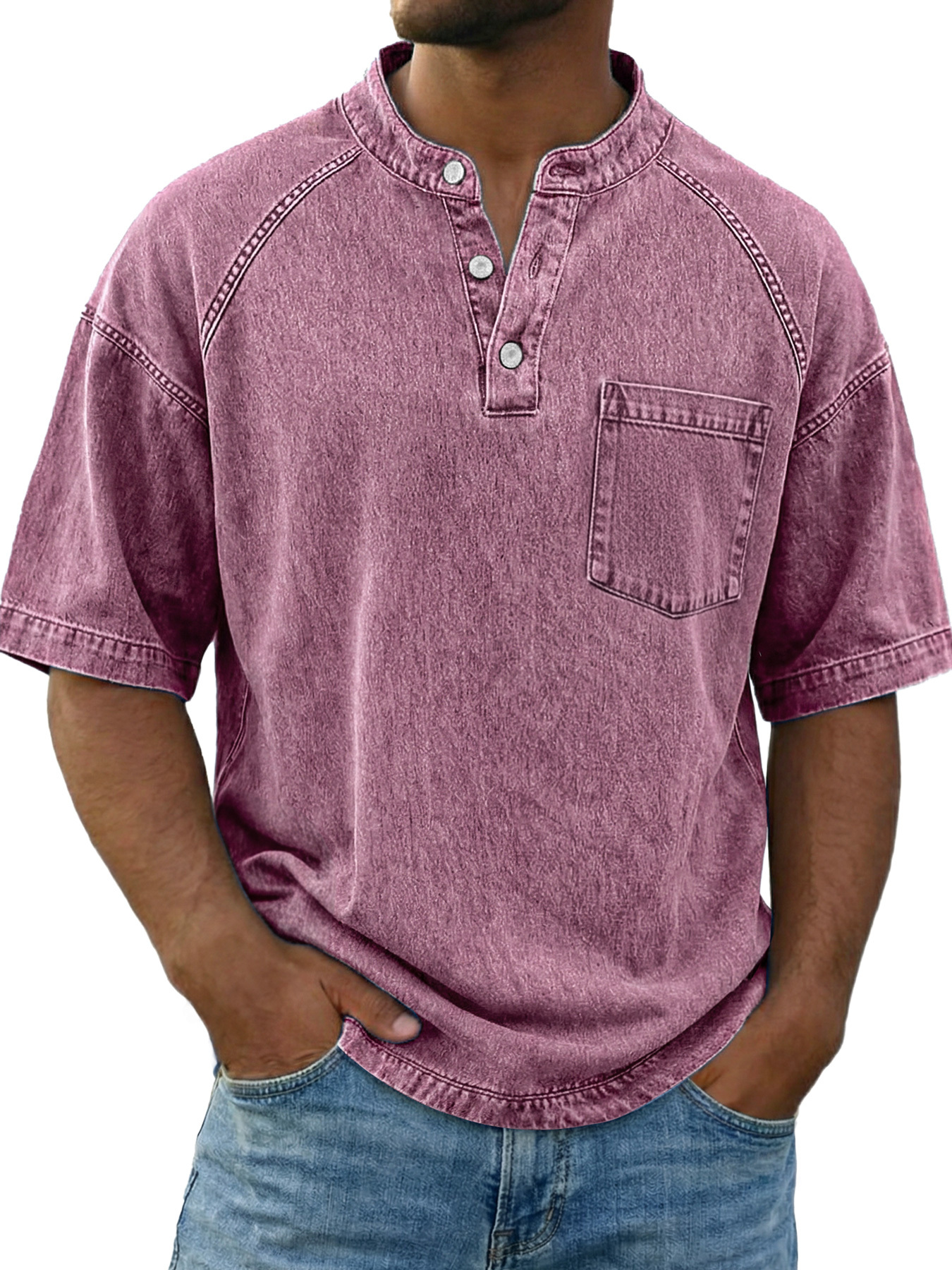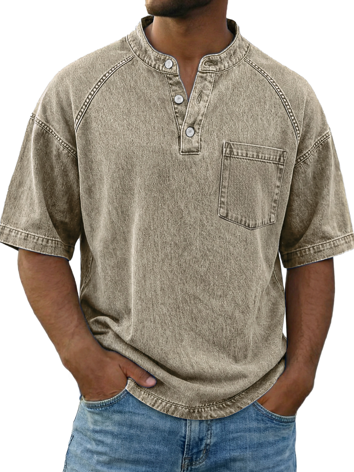 Chemise Henley décontractée à manches raglan vintage pour homme avec poche