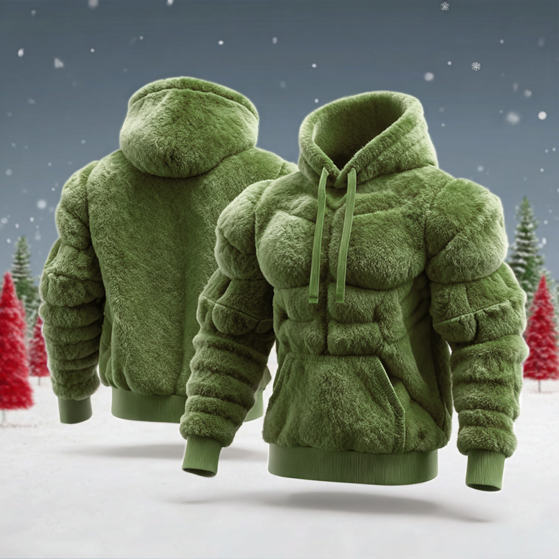 Men's Muscle Art Flannel Warm Hoodie