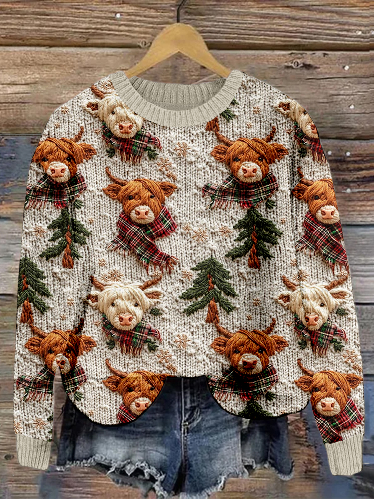 Christmas Cute Highland Cow Knitted Cozy Sweater