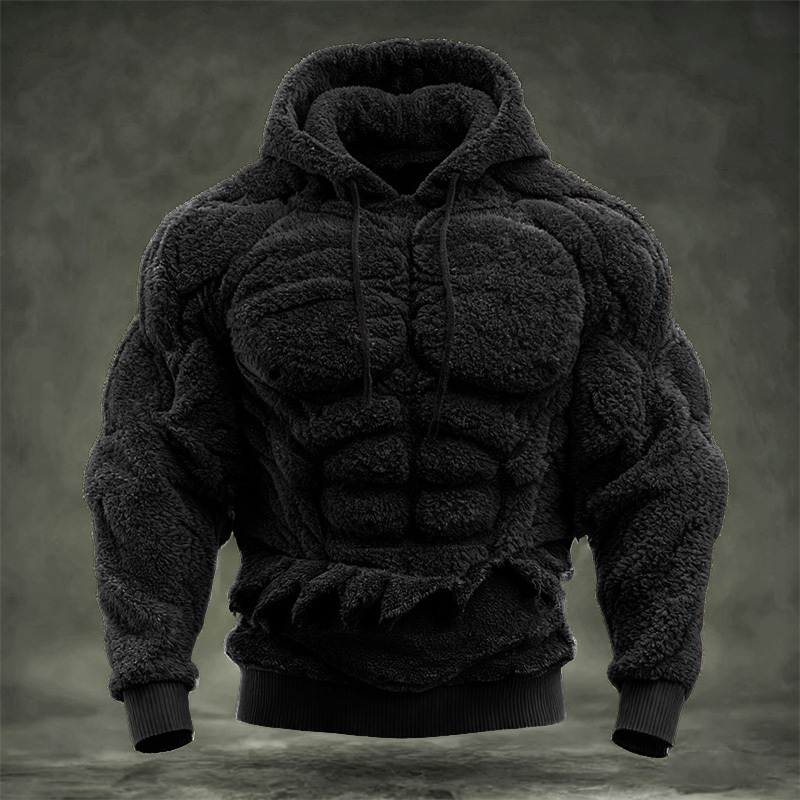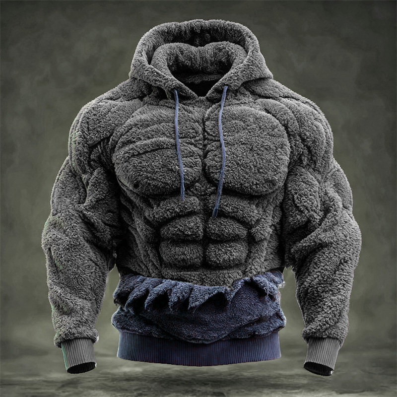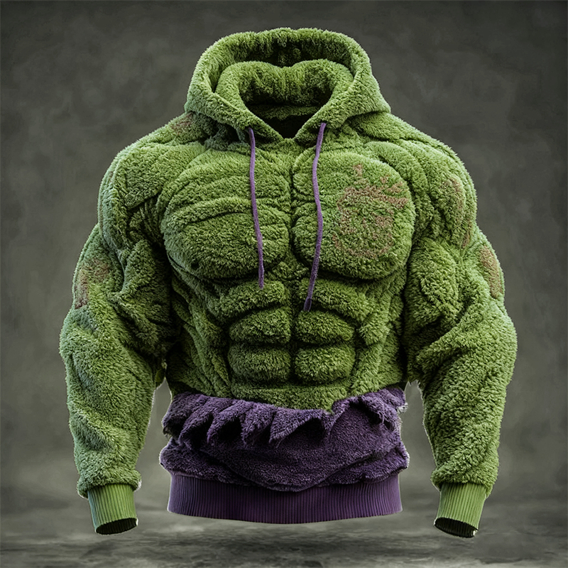 Men's Christmas Green Muscle Line Contrast Cozy Plush Hoodie