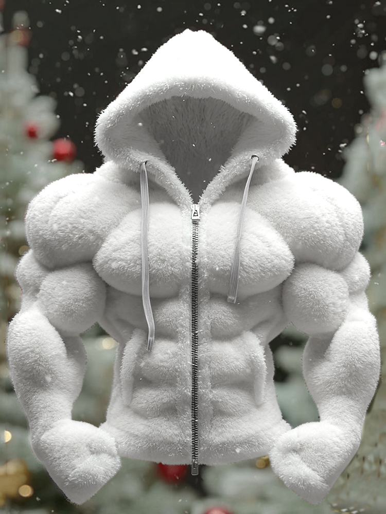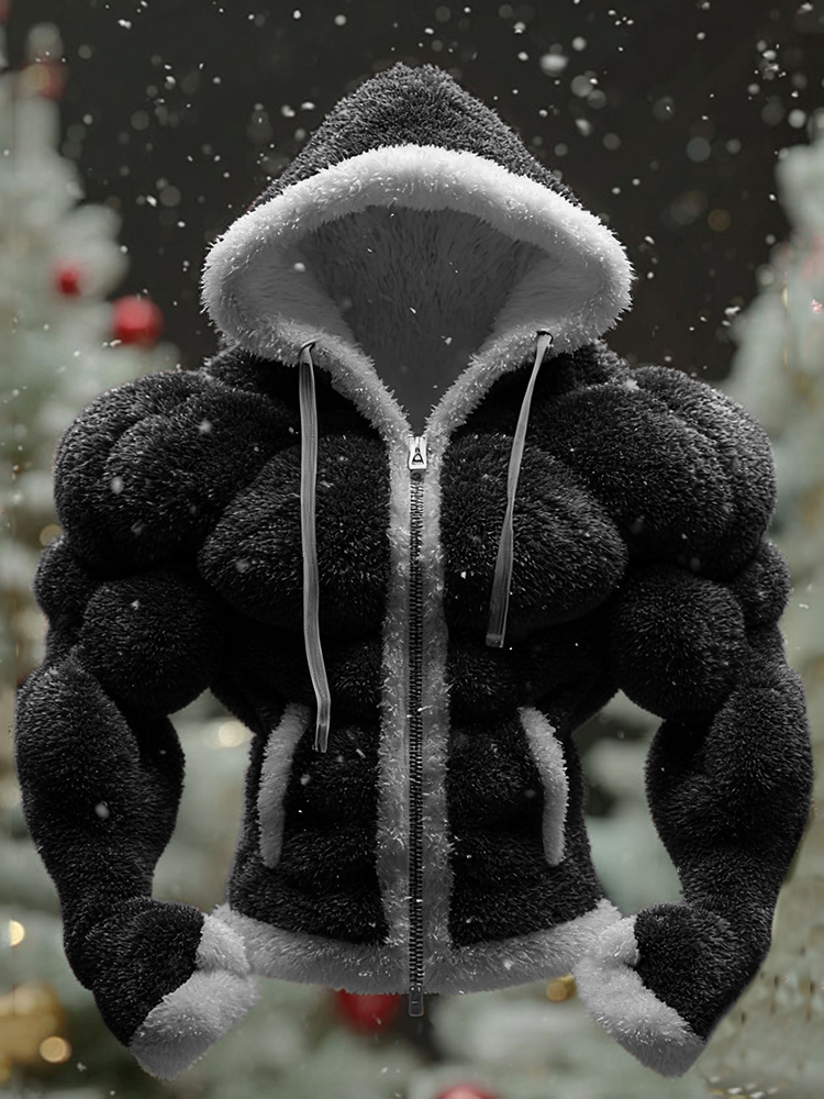 Men's Christmas Color Block Knitted Fur Collar Hooded Sweater