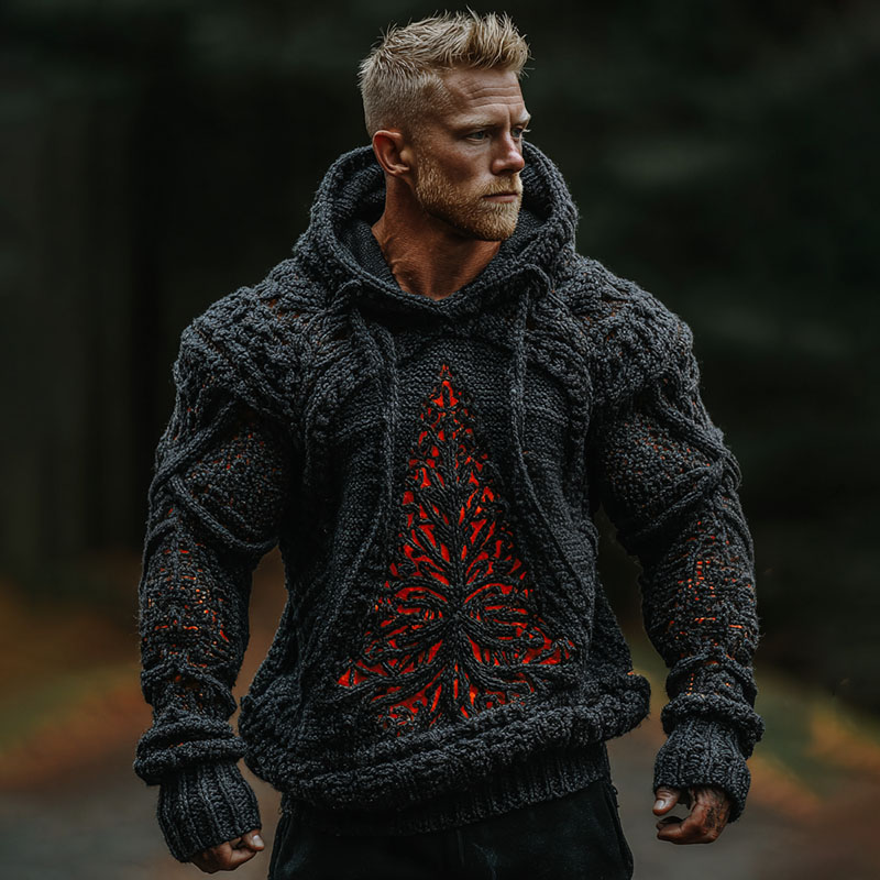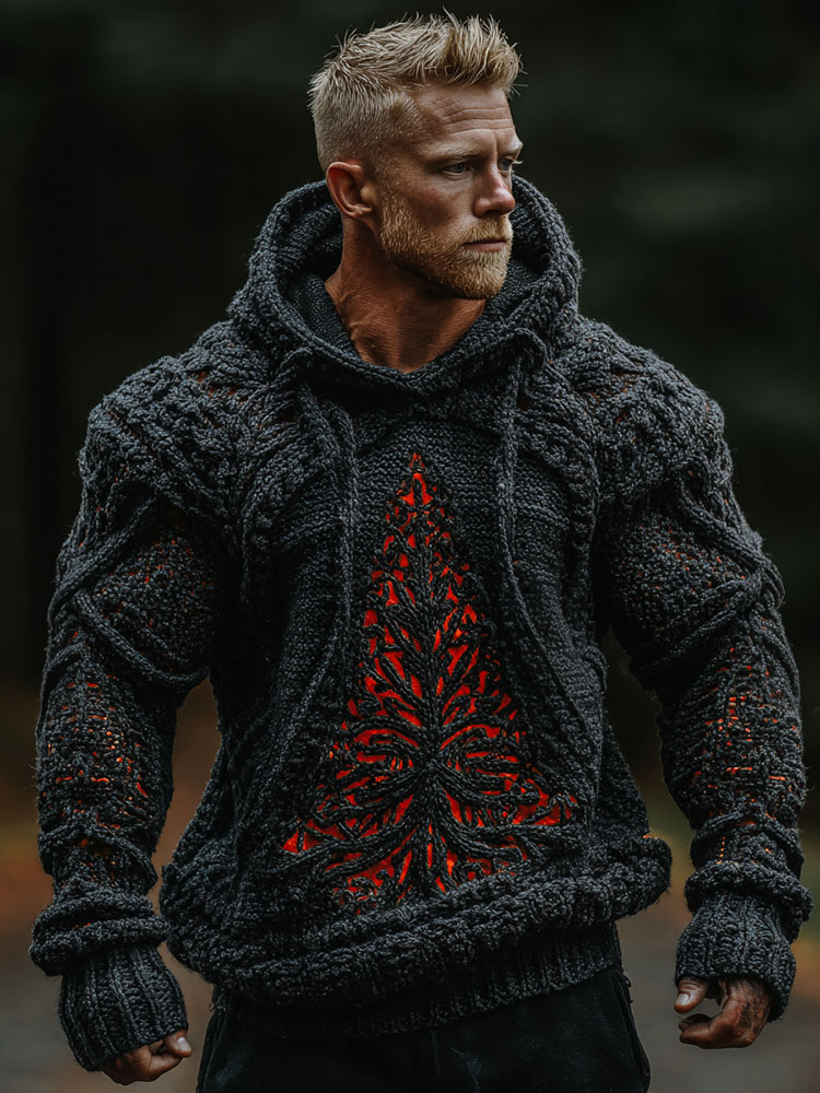Men's Vintage Christmas Tree Celtic Art Jacquard Art Cozy Hoodie