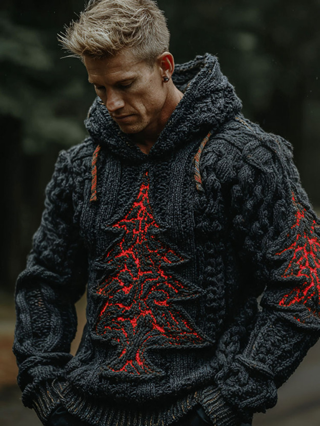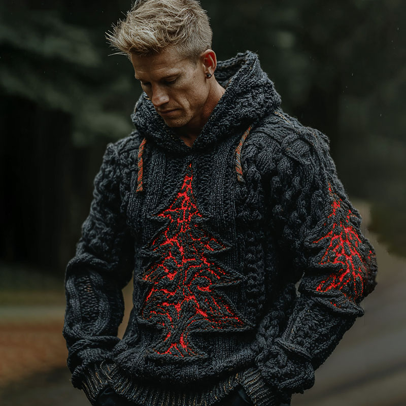 Men's Vintage Christmas Tree Celtic Art Jacquard Art Cozy Hoodie