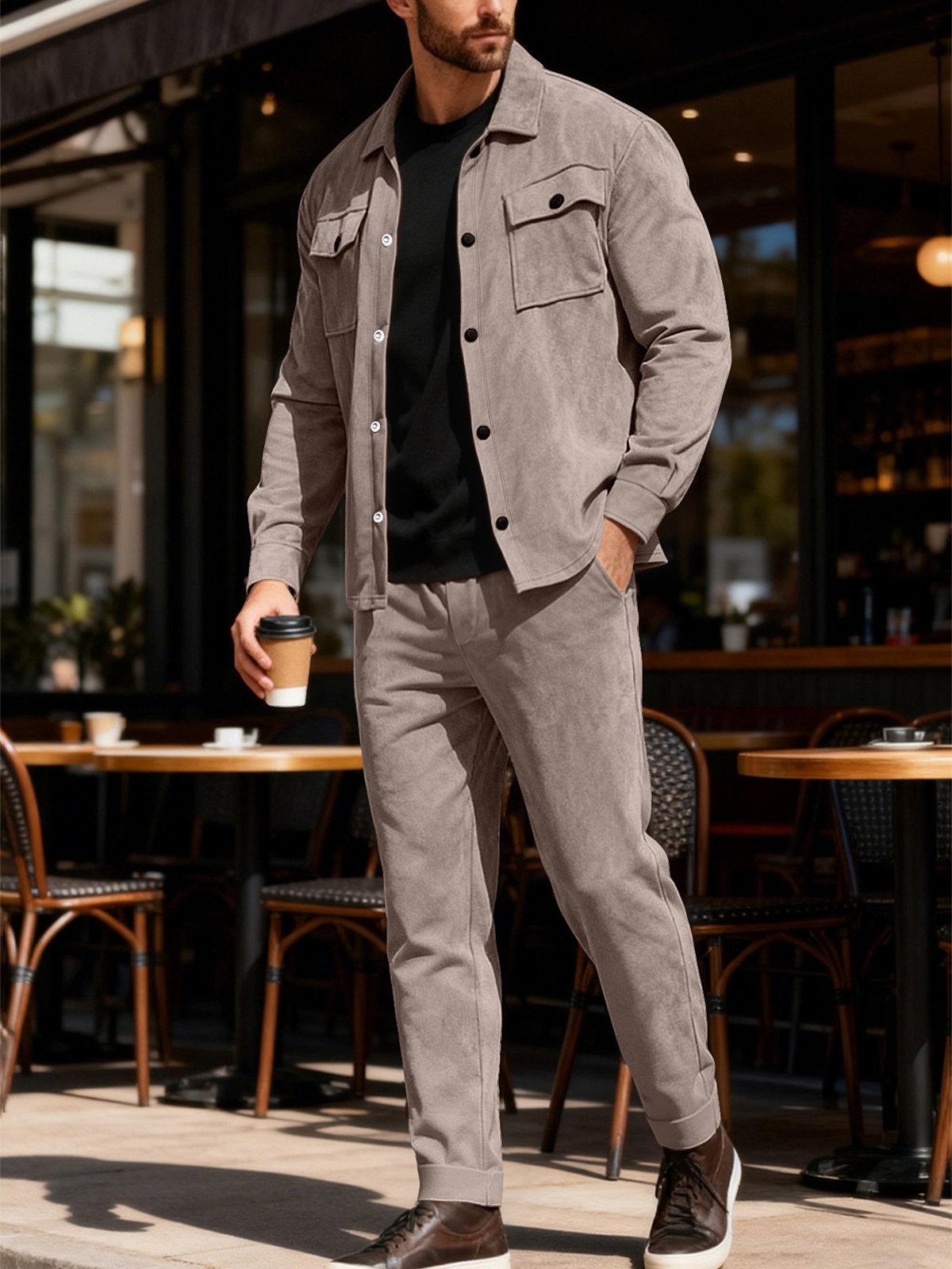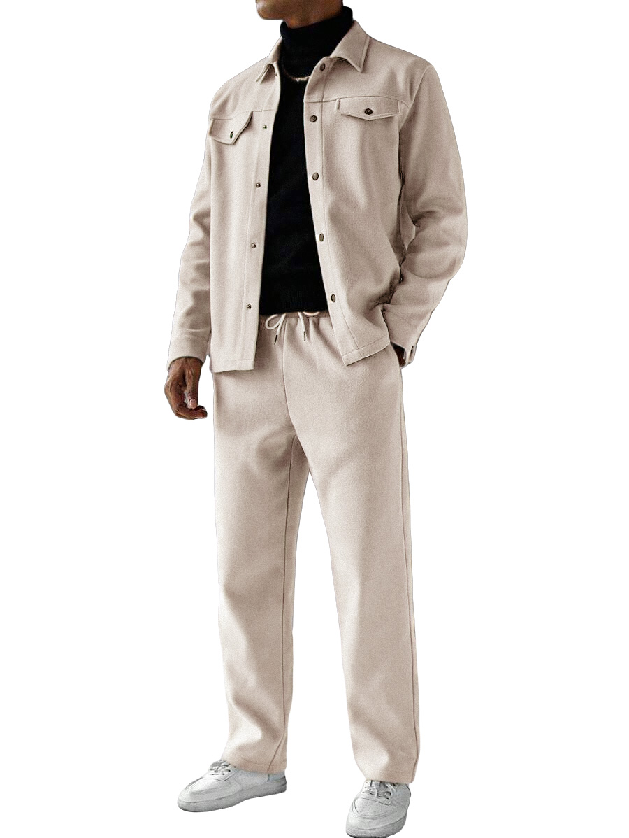 Heavyweight Casual Solid Color Suede Jacket and Trousers Set