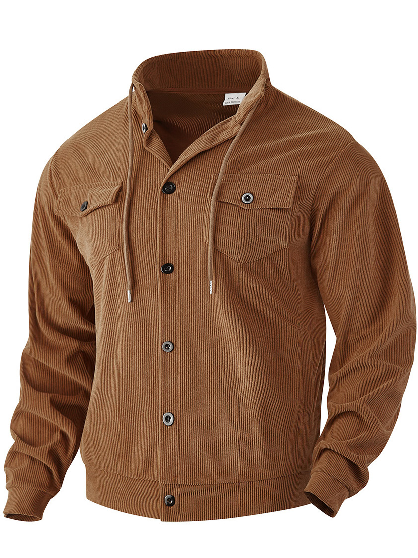 Men's Vintage Fashion Corduroy Stand Collar Double Pocket Jacket