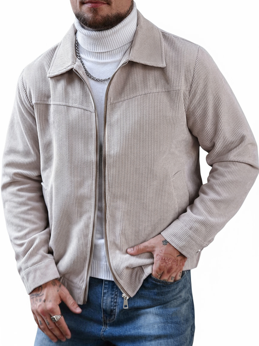 Men's Stylish Zip-up Corduroy Ribbed Casual Everyday Jacket