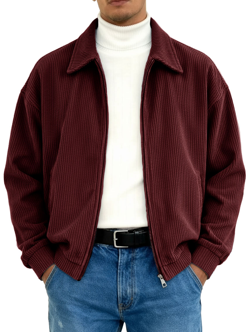 Men's Stylish Vintage Ribbed Fabric Long-sleeved Lapel Motorcycle Jacket