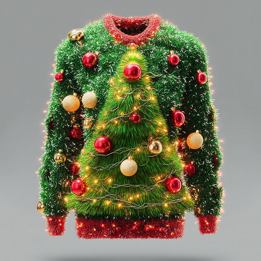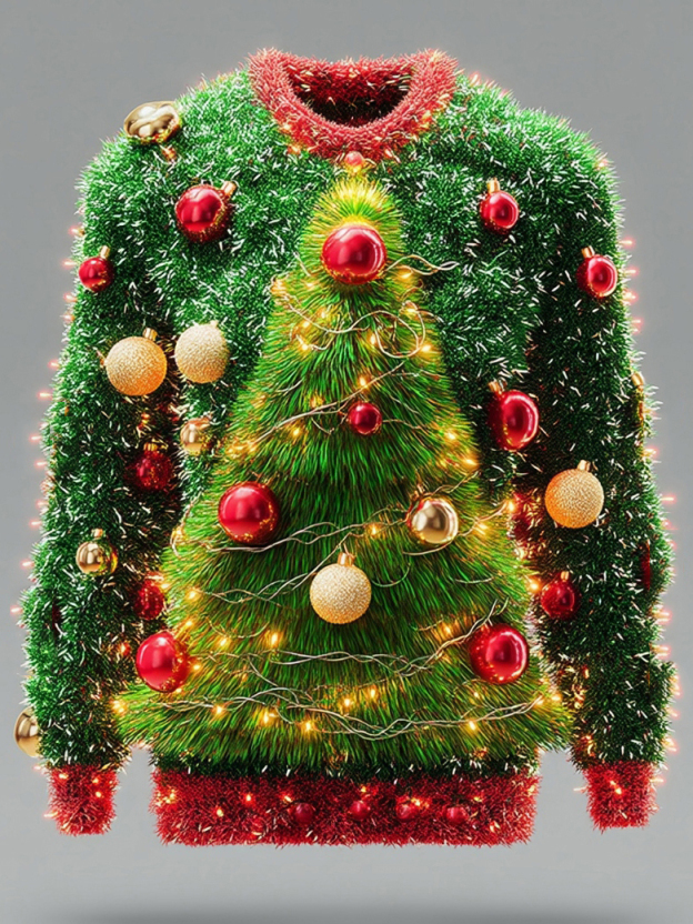 Ugly Christmas Sweater Christmas Tree Colorful Ribbon Unisex Sweater